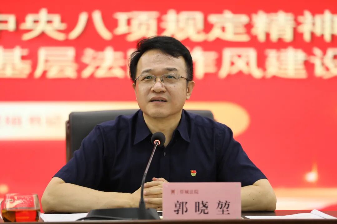 6月30日,党组书记、院长郭晓堃以《深入贯彻中央八项规定精神 筑牢基层法院作风建设根基》为题讲授专题党课。授课中,郭晓堃院长从 “两个维护” 的政治高度出发,深入剖析中央八项规定精神的核心内涵,紧密结合法院工作实际,通过真实生动的案例,深入浅出地讲解对中央八项规定精神的理解,着重强调了担当精神与作风建设对法院工作的重要性,为干警们在今后工作中坚守原则、廉洁司法提供了有力指引。