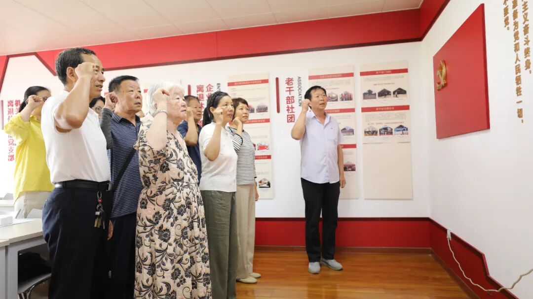 为弘扬党的光荣传统,激励离退休干部永葆政治本色,在离退休老干部支部书记周武建的带领下,支部全体党员面向鲜红党旗进行宣誓。几位白发苍苍的老党员与青年党员代表齐聚一堂,以铮铮誓言向党告白,用赤诚初心诠释使命担当。此次宣誓活动不仅是对老干部政治信仰的再坚定,更是一次跨越时空的精神传承。
