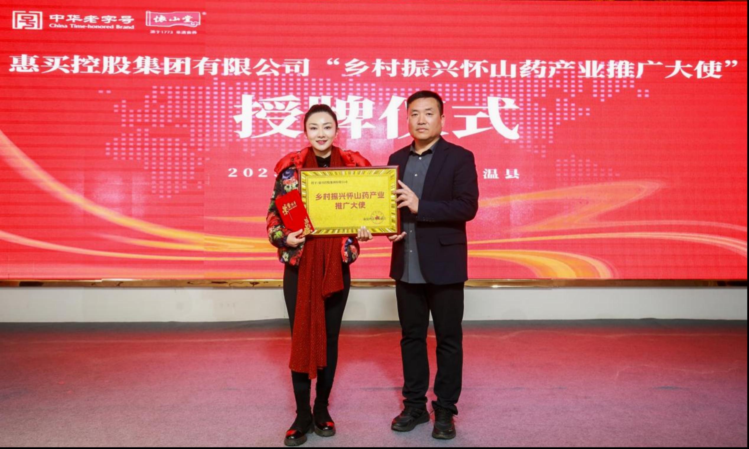 温县四大怀药协会授予惠买集团“乡村振兴怀药产业推广大使”奖牌和证书