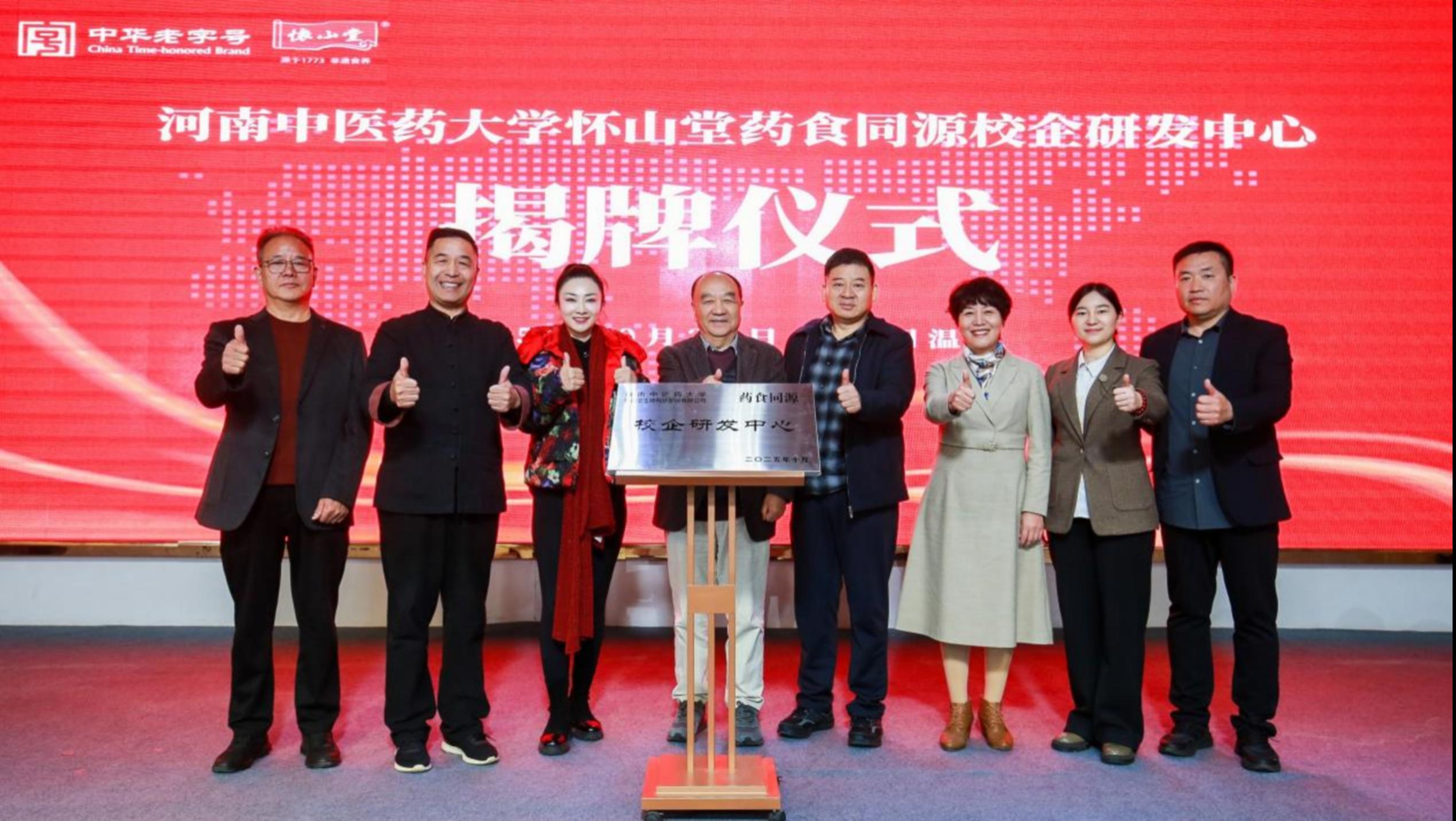 在全场嘉宾见证下,河南中医药大学怀山堂药食同源校企研发中心正式揭牌。