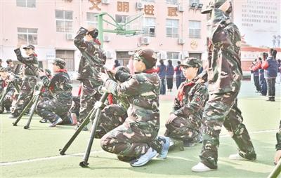 近日,新密市直第二小学荣获“全国国防教育示范学校”称号。“全国国防教育示范学校”授牌仪式现场,由小学生组成的“红小兵军团”亮相,“硬核”展示青少年军事素养(如图)。