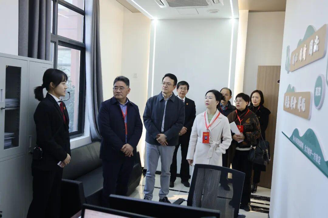 视察组首先实地参观了南曹法庭诉讼服务中心及各类调解室,了解了“商和管成”特色调解品牌含义、多元解纷机制建设和运行情况。