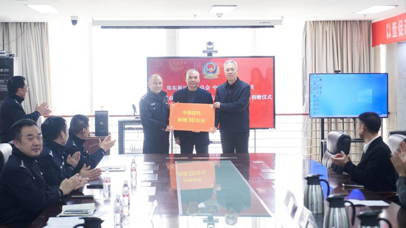 仪式上,中原信托有限公司向郑东新区慈善总会和郑州市公安局郑东新区分局递交了捐赠牌,郑东新区慈善总会向中原信托有限公司颁发捐赠证书。
