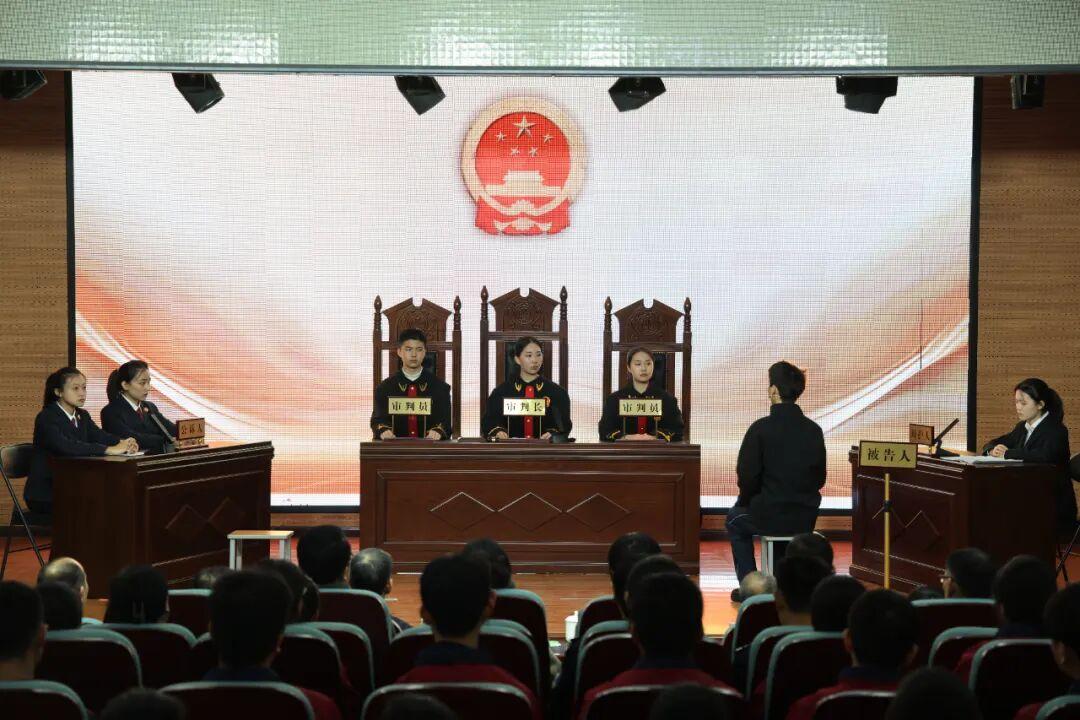 模拟法庭中,学生们分别化身审判员、公诉人、辩护人、被告人等角色,惟妙惟肖地还原了整个庭审过程。庭审结束后,管城法院干警结合模拟案例,利用专业优势,阐释了宪法精神与法治原则,以“沉浸式引导”摒弃单一说教形式,推动校内外联动的“体验式普法”育人新机制。