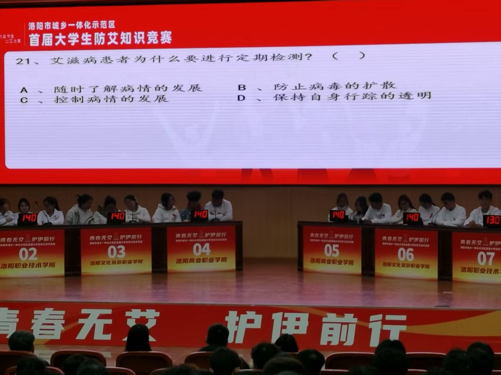 社区文化网讯(通讯员 孟梅)2025年12月1日,在第38个“世界艾滋病日”来临之际,由洛阳市城乡一体化示范区疾控中心主办、辖区高校协办的首届大学生预防艾滋病知识竞赛,在洛阳师范学院逸夫楼礼堂圆满落幕。本次竞赛以“青春无艾、护伊前行”为主题,汇聚4所高校24名学子组建8支战队同台竞技,近300名师生现场观赛,让专业防艾知识在竞技比拼中深入人心。