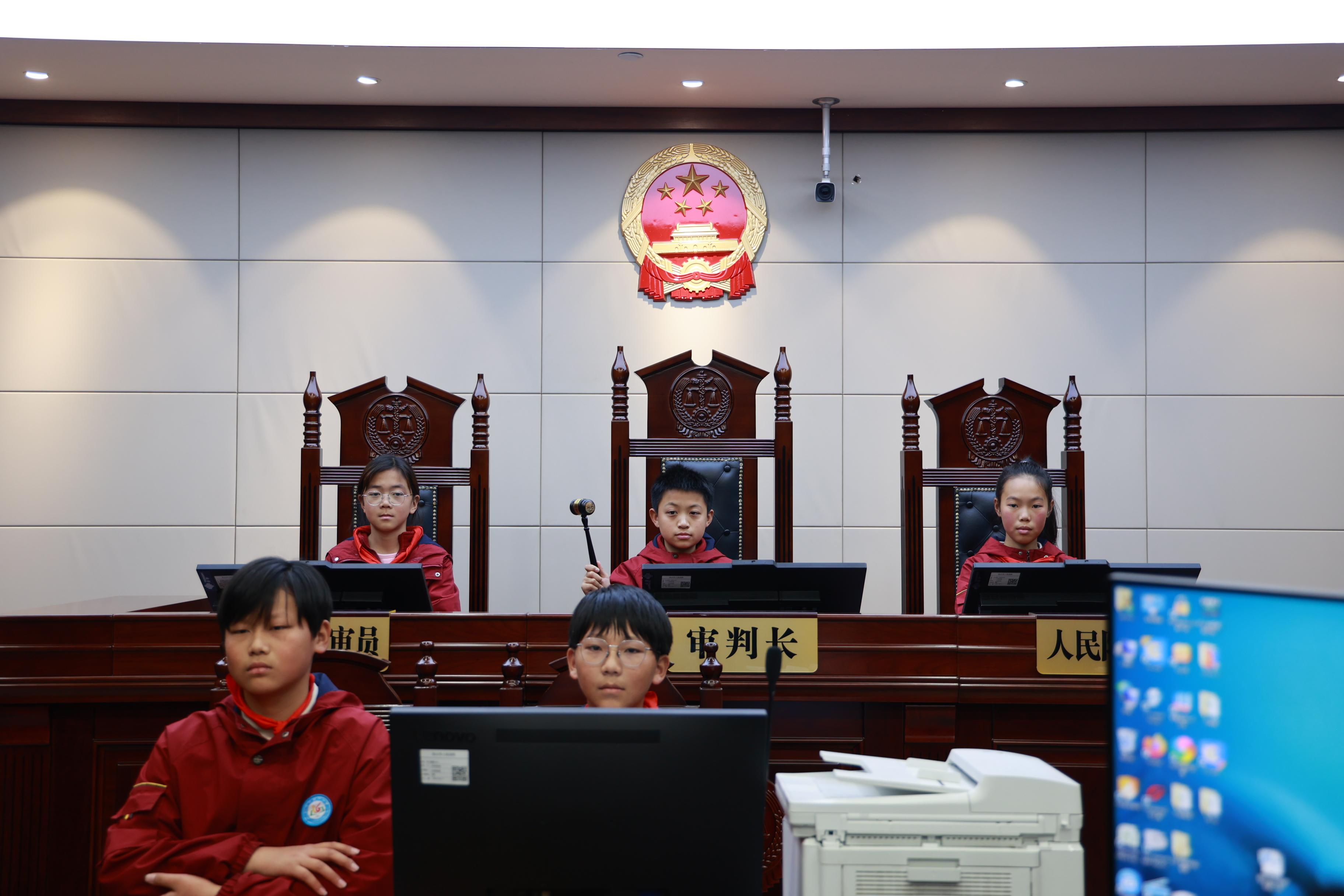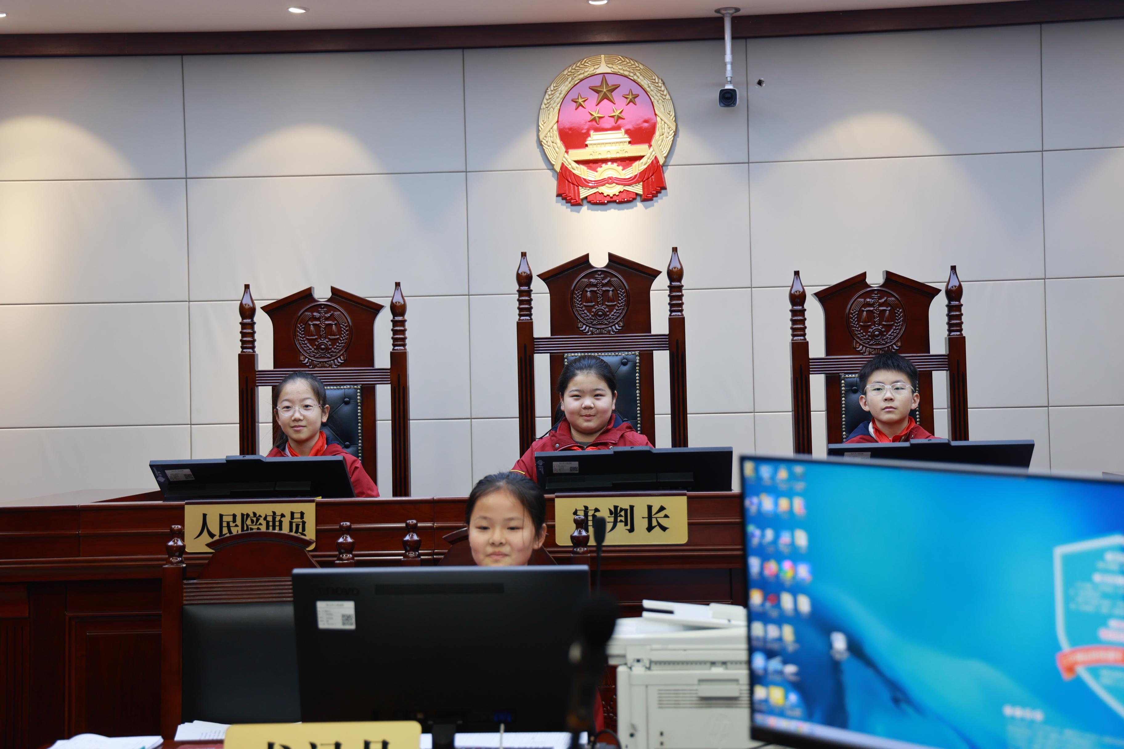 在审判庭,师生共同观看了宪法主题宣传视频,青年干警沈伟、郭向阳、崔香香结合具体案例,围绕相关法律知识,指导学生们在生活中用法律武器维护自身的合法权益。