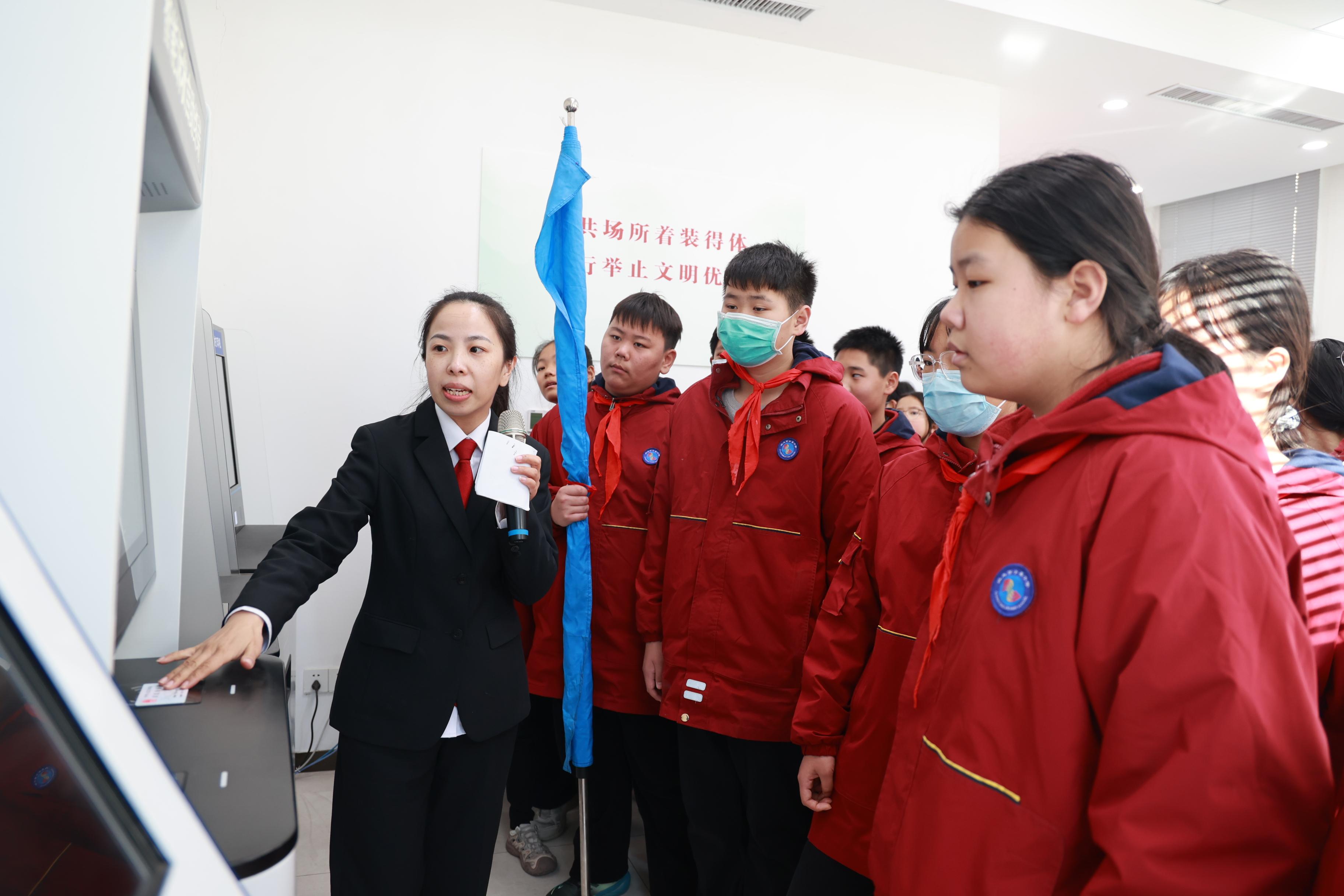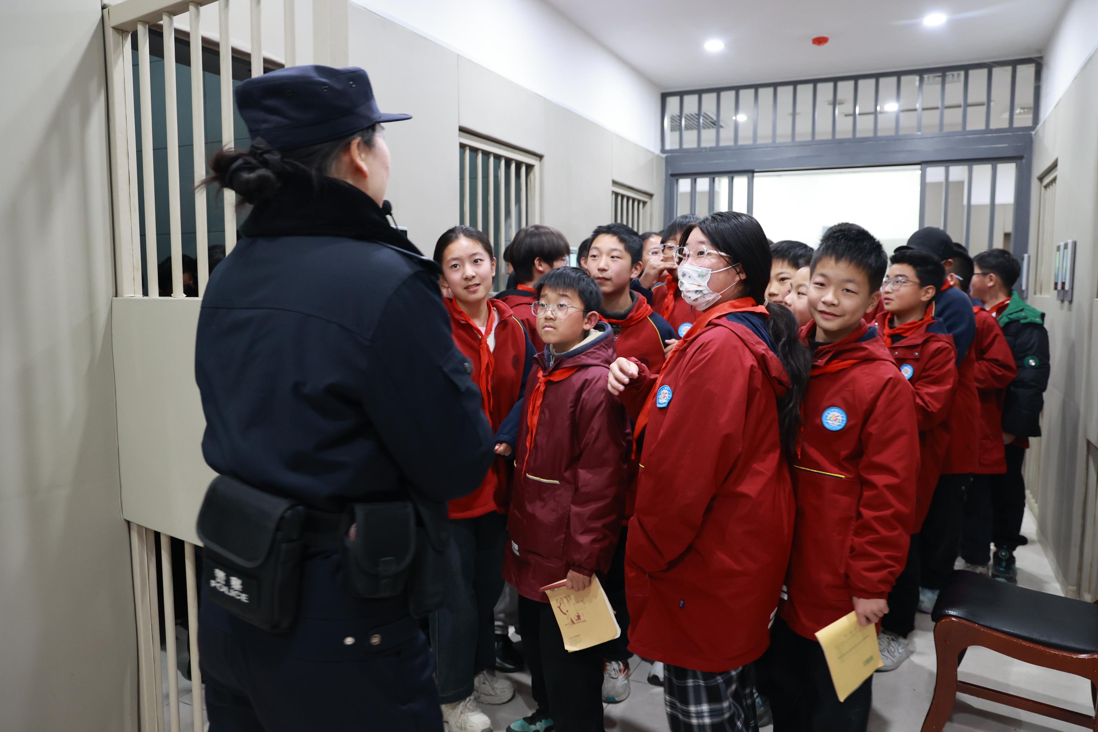 法院干警带领学生们参观了诉讼服务中心、标准化审判庭、羁押室等场所,结合展板图文,详细介绍了法院文化建设和工作职责等,并邀请同学们亲手敲击法槌,沉浸式扮演一次“法官”,零距离感受法庭的神圣和威严。