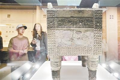 在纪念郑州商城发现70周年考古新发现展上,杜岭一号方鼎吸引市民驻足