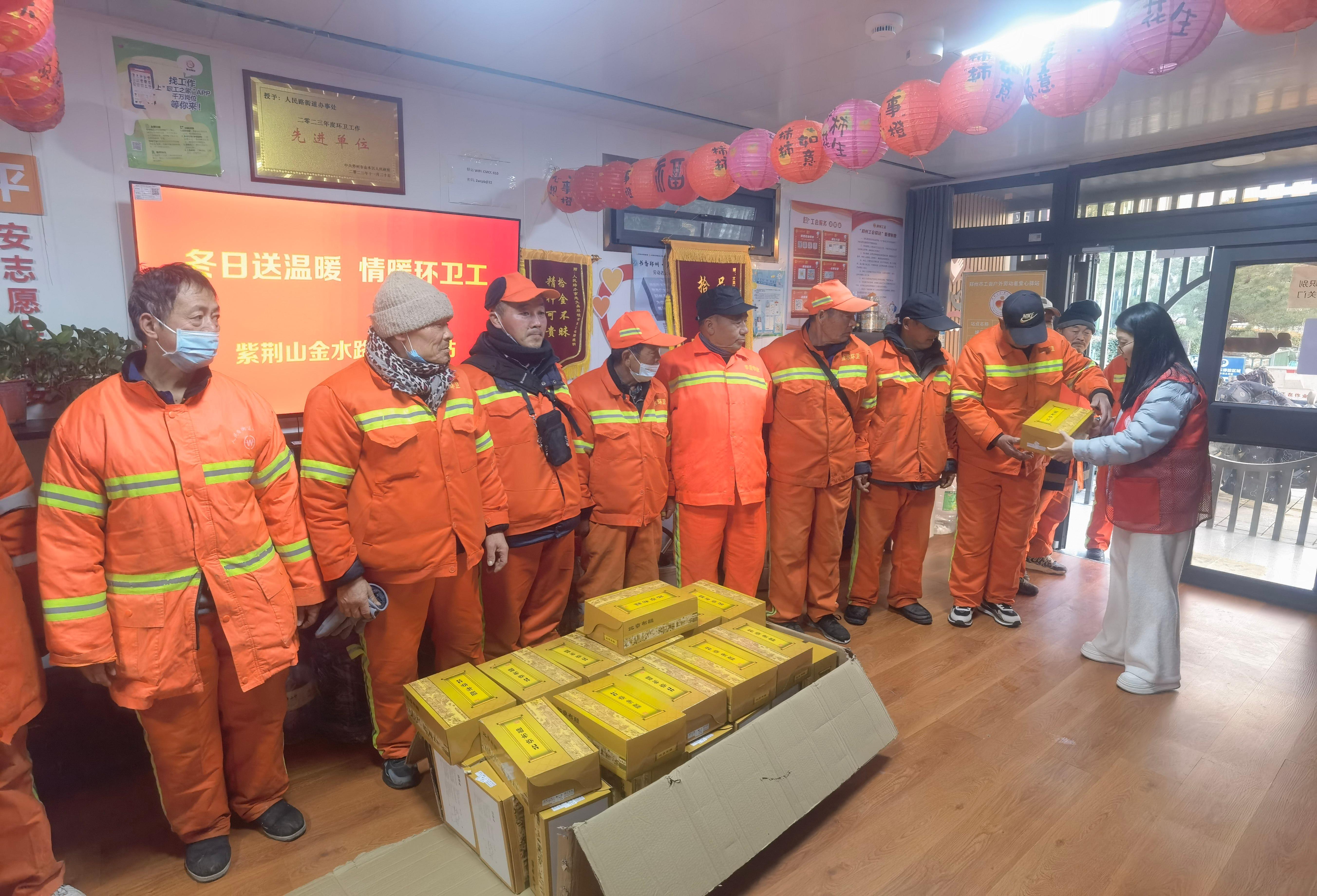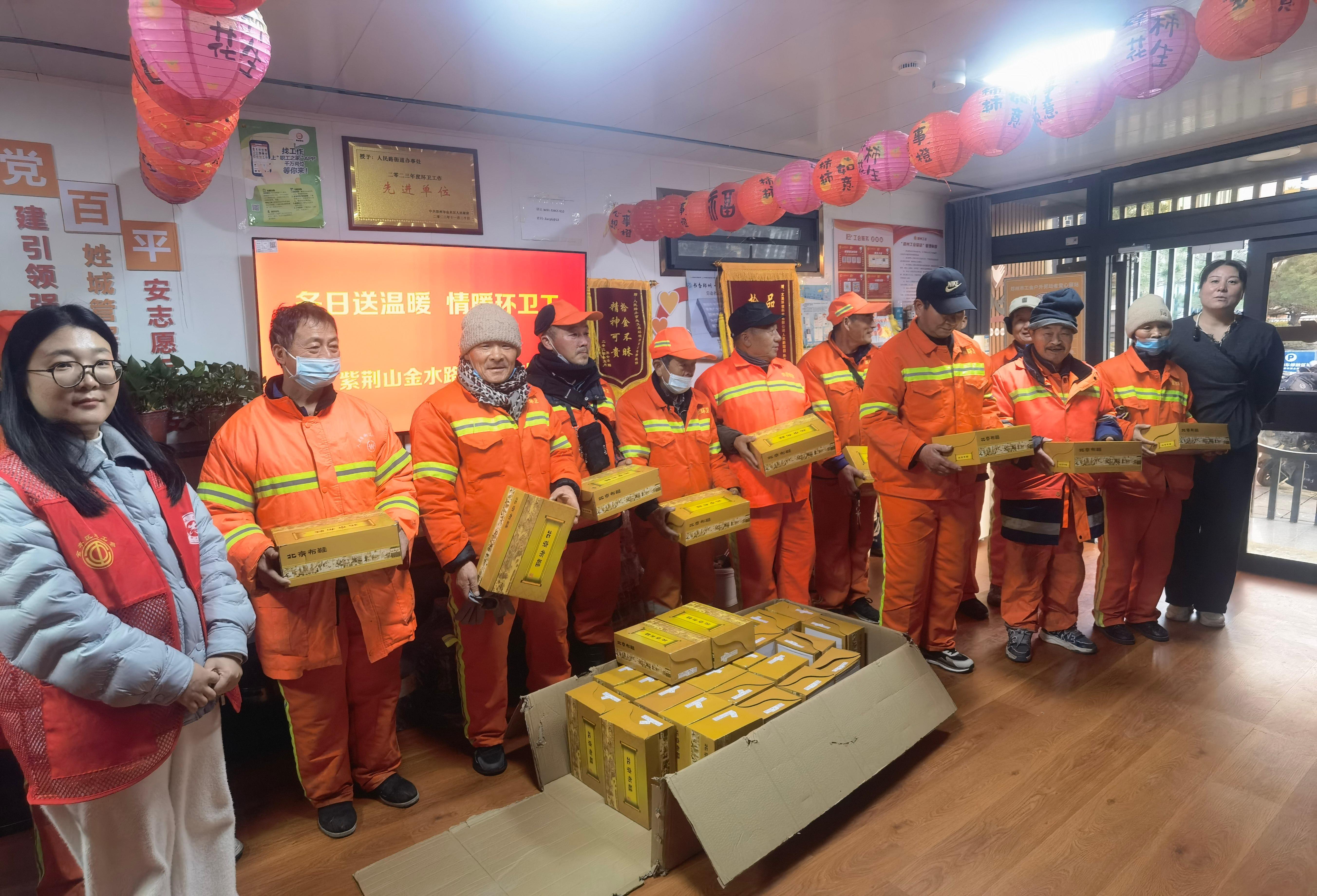 紫荆山金水路工会驿站开展“冬日送温暖.情暖环卫工”慰问活动