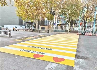 惠济区幼儿园门口,心形的彩绘萌趣十足;中原区学校周边,“关爱儿童”的提示语醒目亮眼;经开区的街巷里,“小朋友 大郑州”的标语温暖亲切;郑东新区主干道上,彩色的斑马线设计兼具颜值与实用……“这个儿童友好斑马线老远就能看见,司机们都会自觉减速。”校门口的护学志愿者忍不住点赞。