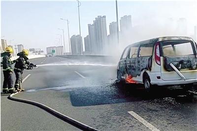 冬季气温低,空气干燥,容易产生静电、火花,车内的橡胶、塑料件也易老化龟裂,极易导致车辆自燃。近日,郑州消防接到报警“北四环高架西向东方向,一辆汽车自燃起火”。救援人员到达现场发现,起火车辆处于空载状态,车身已全面燃烧,立即利用水枪对车厢进行冷却降温,对油箱起火部位实施压制。经过20多分钟的紧张处置,将现场明火成功扑灭,此次事故未造成人员伤亡。