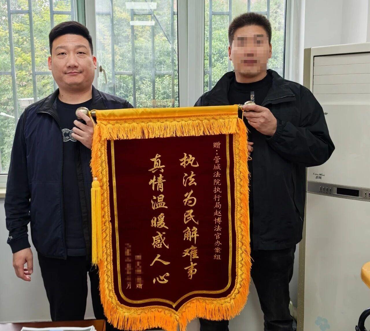 “我以为这钱要不回来了……没想到,法院连保险里的钱都能查到,还给我打到帐上了!”近日,水电工田某攥着16万元劳务费到账的短信,激动得声音发颤,眼眶红润,手握着一面印有“执法为民解难事 真情温暖感人心”烫金大字的鲜红锦旗,向郑州市管城回族区人民法院执行干警赵博表达感谢。