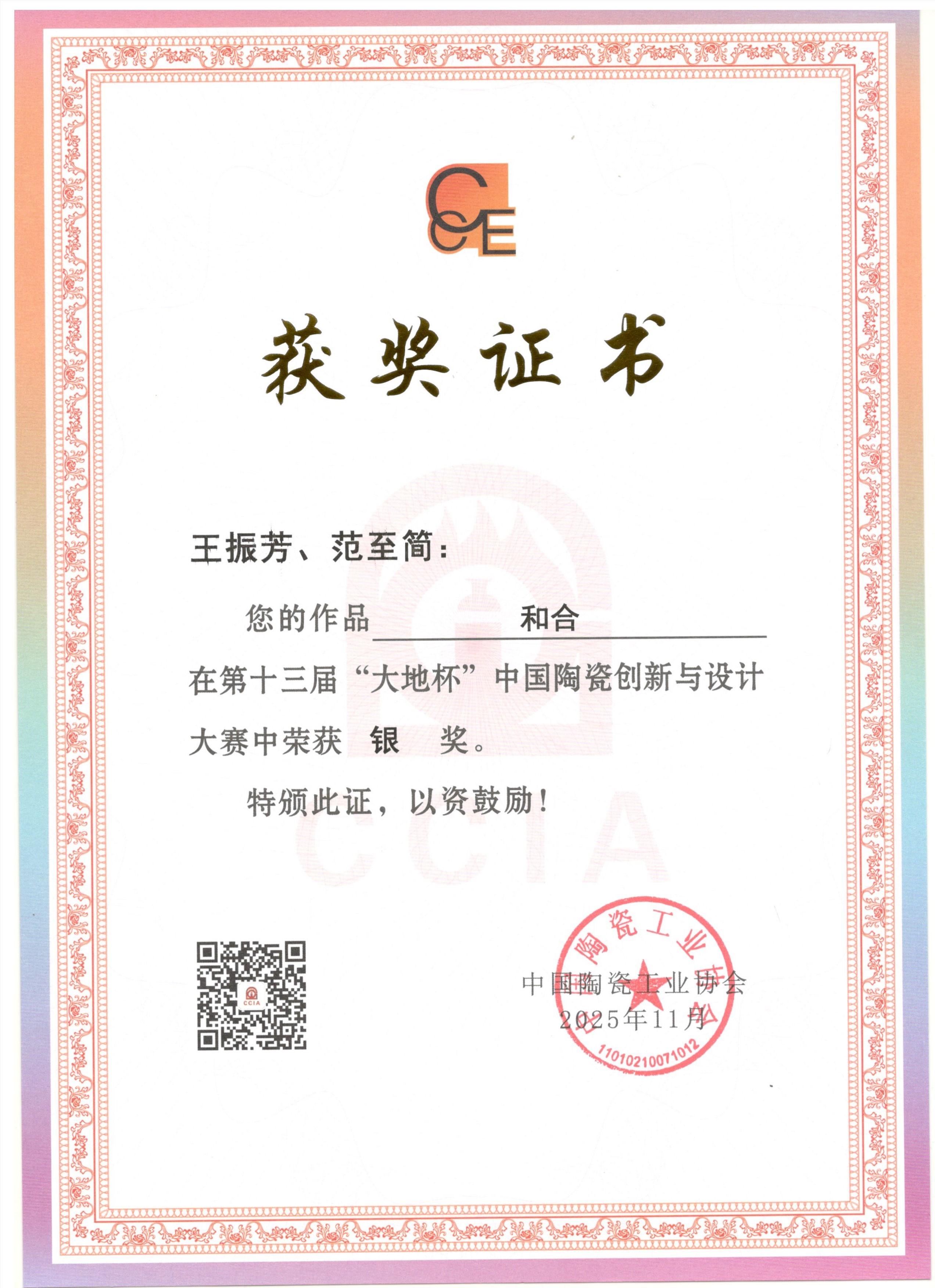 “大地杯”作为中国陶瓷行业的权威赛事,本届吸引了全国各产瓷区数千件精品参赛,涵盖艺术瓷、日用瓷、建筑卫生瓷等多个品类,评审环节严格对标工艺水准、创新表达与文化内涵。《和合》能够从中脱颖而出,源于其对汝瓷传统技艺的极致坚守与对“和谐”文化主题的生动诠释,是传统美学与当代精神的完美契合。