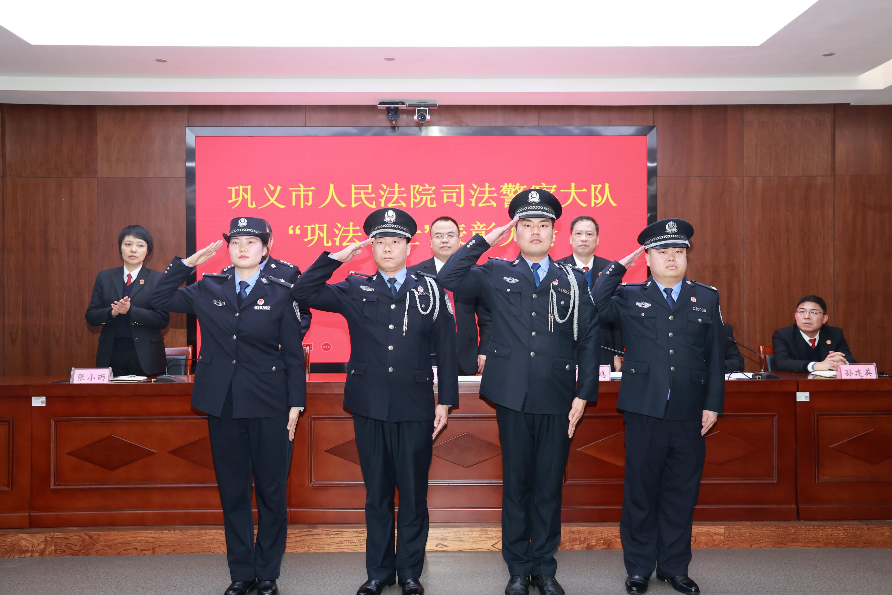 活动现场为孙攀琳、尚晓琛、沈伟、李坤等同志颁发“巩法卫士”奖章,表彰他们为巩义法院作出的贡献。