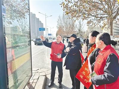 1月13日上午,郑州公交集团第三运营公司三车队党员志愿者携手郑州地铁2号线、7号线晶晶服务队,齐聚紫荆山南路南三环、荆胡公交站台开展文明交通志愿服务活动。