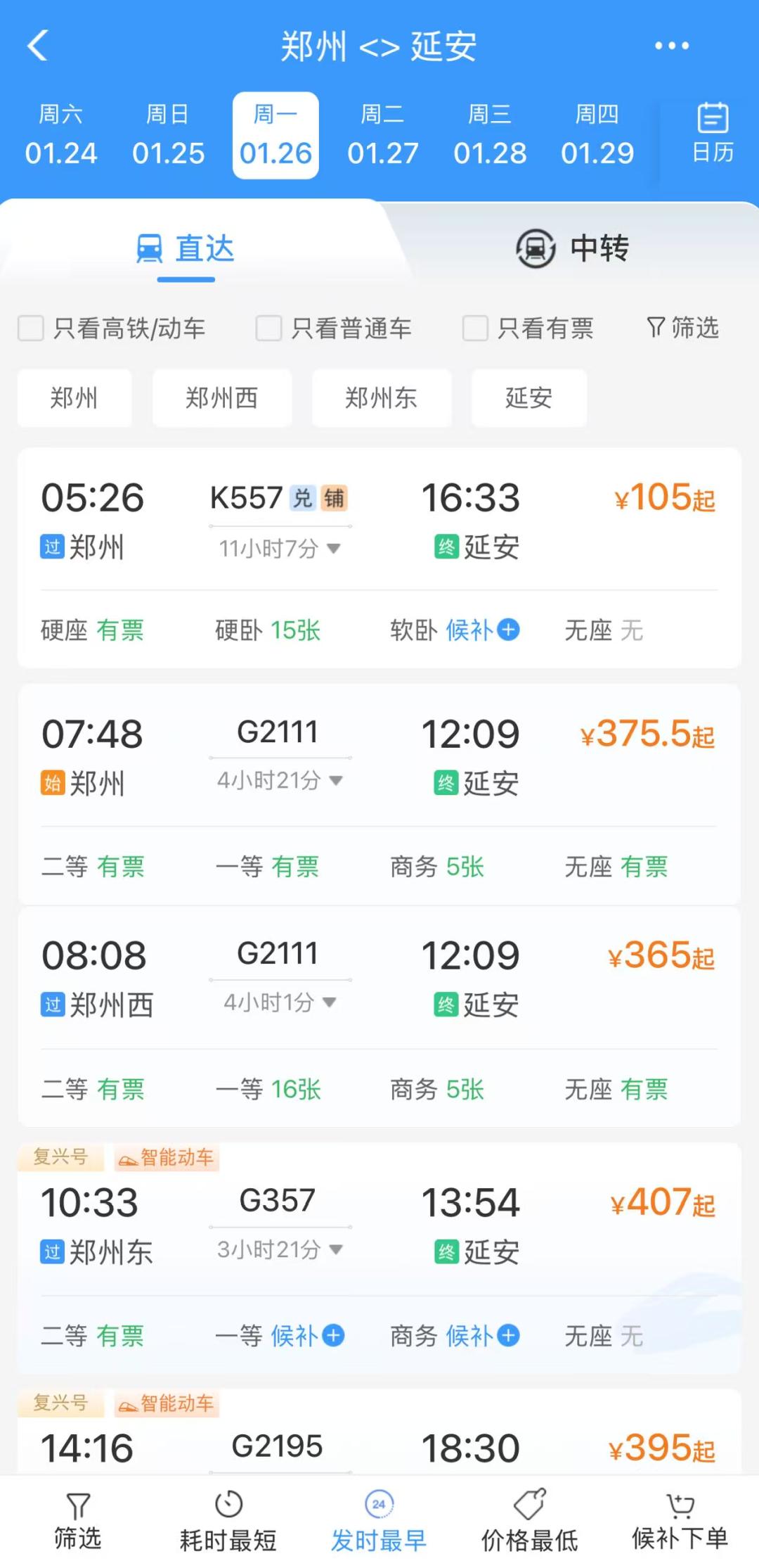 ✅郑州到延安的高铁车票目前已开售,最快仅需3.5小时左右,较此前仅有的火车车票节省8小时