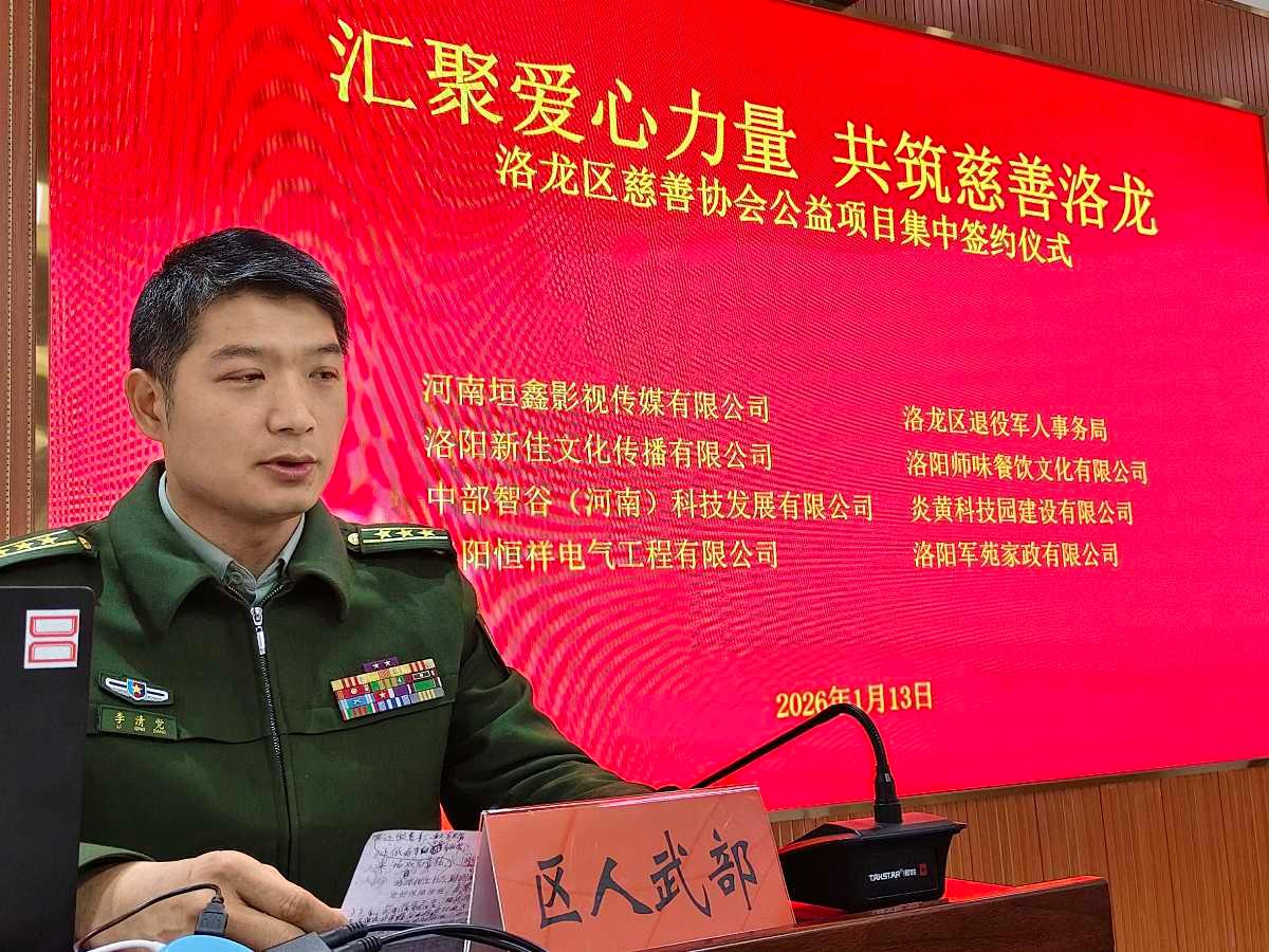 社区文化网讯(张雷龙)26年1月13日上午,洛龙区慈善协会公益项目合作签约仪式在区委党校会议室园满举行。活动以同心向善聚爱前行”为主题,区慈善协会携手多家爱心企业、相关单位集中签约5个重点公益慈善项目,覆盖文化公益、拥军优属、消费捐赠三大领域,创新拓宽慈善参与渠道,为洛龙慈善事业高质量发展按下“加速键”。