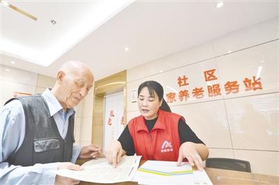 丰庆路街道养老服务中心,工作人员在向老人介绍居家养老政策。 本报记者 马健 摄