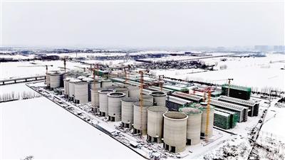 此外,库区建设了15栋高大平房仓,单仓仓容可达1.54万吨,装粮线高度可达15米,是国内现有装粮高度最高的平房仓。另外,项目还建设有10个半地下带半维护结构油罐,单体罐容3000吨。