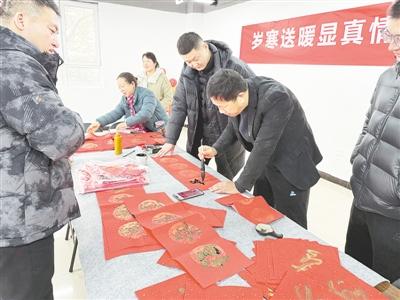 活动现场精心划分出三大趣味体验区域,让居民们各享其乐。“翰墨写福字”书画区墨香四溢,红纸铺展,笔墨备好,居民们纷纷执笔挥毫(如图),在红纸上写下一个个形态各异的“福”字,把浓浓的祝福融入笔墨之间;“欢乐钓‘鱼’儿”区域充满童趣,居民们手持磁铁鱼竿,全神贯注地钓起“小鱼”;“趣味套圈圈”竞技区则笑声不断,大家瞄准心仪的目标抛出套圈,每一次成功套中,便引来一阵欢呼与掌声。