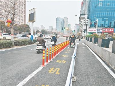 “以前过马路总担心和电动车、汽车混行,现在走起来踏实多了!”昨日,由东向西步行上班的王女士沿着斑马线顺利通过金水路与东明路交叉口,看着清晰的标线和独立的非机动车通道(如图),连连称赞。